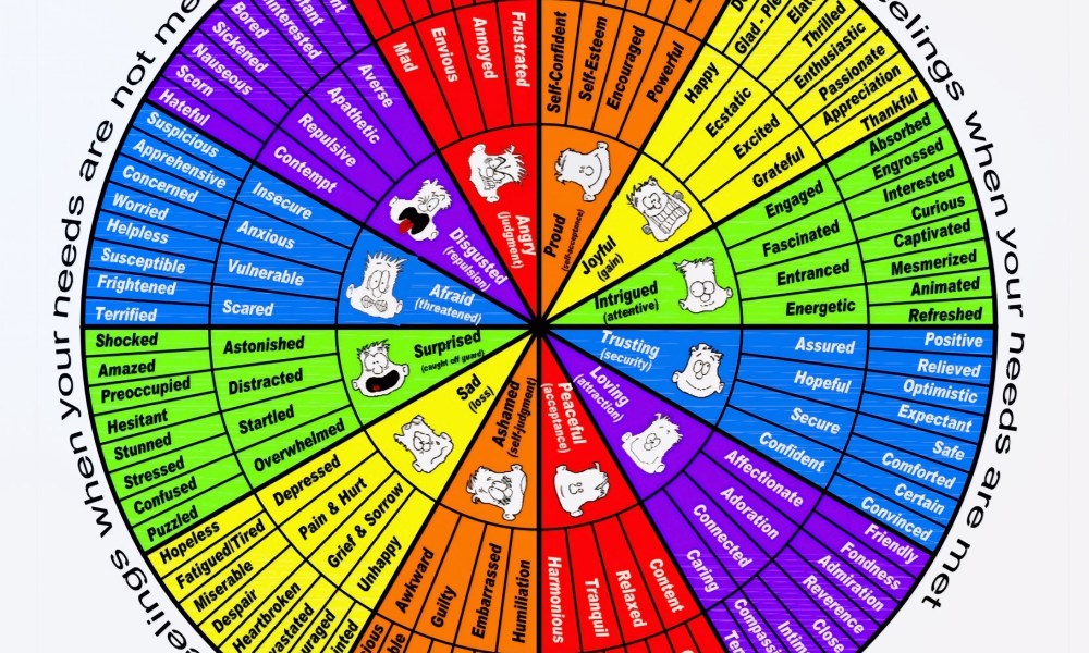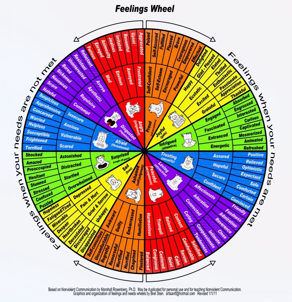 Which emotions or feelings on the Feelings Wheel would you like to experience more often? Remember, sharing your thoughts, making intentional choices, meeting needs, and working toward “win-win” relationship outcomes strongly influence how you feel.